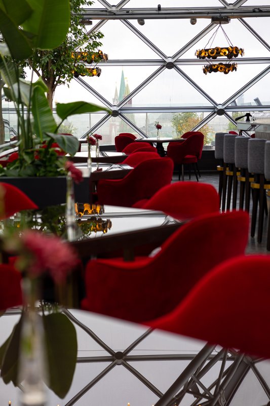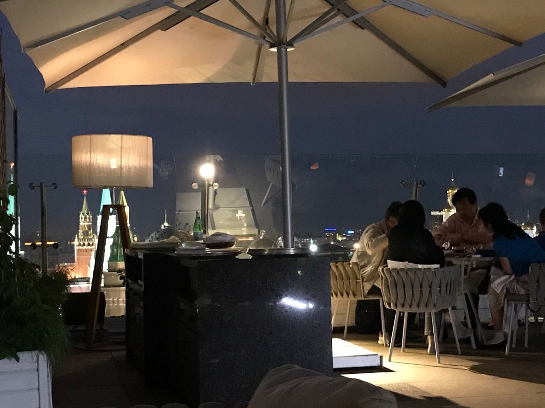 Ресторан произвел отличное впечатление - красивый интерьер, особенно на двенадцатом этаже с фонариками, приятная тихая атмосфера и потрясающий вид на Красную площадь. Веранда тоже оформлена со вкусом. Единственное пожелание касается подачи вина - тарталетки с черной икрой уступают по вкусу бутербродам из трюфельного коржа с красной икрой.